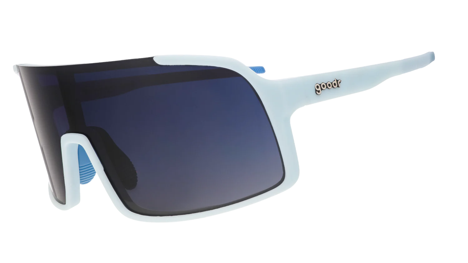 Montures semi-sans bord, avec écran bleu. Les verres polarisés dégradés réduisent l'éblouissement dû à la lumière du soleil sur l'exosquelette métallique de votre kidnappeur. Ne glissent pas et ne rebondissent pas pendant que vous essayez désespérément d'échapper à vos ravisseurs cyborgs. (P.S. La résistance est futile.)